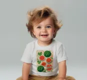 Klassisches, bequemes Baby T-Shirt mit lockerer Passform und praktischen Druckknöpfen.