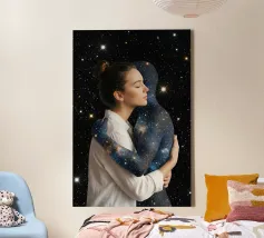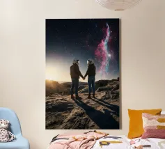 Tauchen Sie ein in eine kosmische Traumwelt mit diesem eindrucksvollen Kunstwerk, das einen Astronauten zeigt, der ruhig auf einem schwebenden roten Felsen über einer glühenden Galaxie sitzt. Lebendige Nebelfarben, detaillierte Weltraumtexturen und die ruhige Pose schaffen eine kraftvolle Mischung aus Sci-Fi-Wunder und surrealer Fantasie. Dieses Bild ist perfekt für Weltraumliebhaber, Fans futuristischer Kunst und Liebhaber moderner Dekoration und verleiht jedem Wohnzimmer, Studio oder kreativen Raum Energie, Mysterium und visuelle Wirkung. Eine atemberaubende Hommage an die Erforschung und das unendliche Universum.