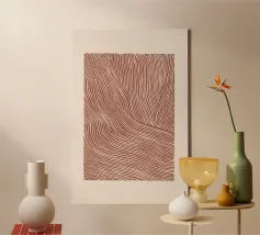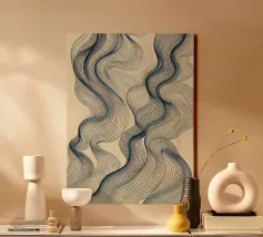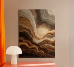 Die sanften, organischen wellen Linien und die monochromatische Farbpalette aus Gold, Weiß und Braun verleihen diesem Kunstwerk eine elegante Ruhe, die perfekt in moderne Wohnräume passt.