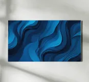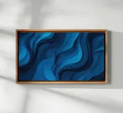 Lebendige blaue Wellen verschlingen sich in sanften, fließenden Mustern und bilden einen abstrakten Hintergrund, der sich perfekt als Desktop-Hintergrund eignet. Dieses Design betont die Tiefe und Bewegung und wertet jeden digitalen Raum auf.