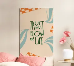 Dieses lebendige und inspirierende typografische Werk fängt die Essenz des Satzes "Go With the Flow" ein. Die kühne, fließende Schrift steht vor einem Hintergrund aus dynamischen Wasserwellen, die die Ebbe und Flut des Lebens symbolisieren. Die leuchtend blaue Farbpalette vermittelt ein Gefühl der Ruhe und Gelassenheit und lädt dazu ein, sich auf den natürlichen Rhythmus des Lebens einzulassen. Dieses Kunstwerk ist eine perfekte Erinnerung daran, die Kontrolle loszulassen und auf die Reise zu vertrauen.