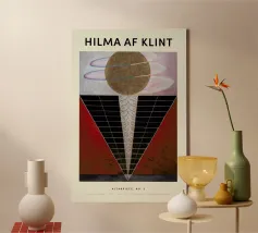 Tauchen Sie ein in Hilma af Klints komplizierten "Baum der Erkenntnis Nr. 4". Dieses fesselnde abstrakte Werk, eine meisterhafte Mischung aus Aquarell und Graphit, erforscht komplexe spirituelle und kosmische Konzepte durch seine zentrale, verwurzelte Struktur und die ausstrahlenden Formen. Klints Pionierrolle in der abstrakten Kunst wird in diesem Werk deutlich, das zur Kontemplation über die tiefe Verbundenheit der Existenz einlädt. Unser hochwertiges Digitalposter mit einer Auflösung von 7000x5000 Pixeln und 300 dpi gibt die subtilen Strukturen und tiefgreifenden Details dieses einflussreichen Meisterwerks perfekt wieder und macht es zu einer wahrhaft einzigartigen Ergänzung zu