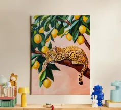 Leopard springt zwischen Baum mit Fauvismus Malerei Kunststil