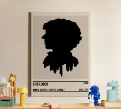 Sherlock Holmes Druck, Alternative Film Poster, Minimal Wandkunst, Schwarz & Weiß, Silhouette, Hochwertige Drucke, Kino, Film Fan Geschenk