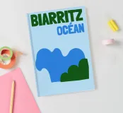 Lassen Sie sich von der Faszination des Atlantiks verzaubern mit diesem Reiseposter "Biarritz Océan", das in erfrischende Blau- und Grüntöne getaucht ist. Der fette grüne Text "BIARRITZ" und das blaue "OCÉAN" (Ozean) stehen über abstrakten, organischen Formen, die die rollenden Wellen und die üppige Küstenlandschaft von Biarritz darstellen. Dieses minimalistische, aber dennoch eindrucksvolle Design fängt die Essenz dieses berühmten Surfreviers an der baskischen Küste ein. Dieser hochwertige Digitaldruck mit einer beeindruckenden Auflösung von 7000x5000 Pixeln bei 300 DPI ist perfekt geeignet, um jedem Raum einen Hauch von ruhigem Küstencharme und Fernweh zu verleihen und garantiert eine außergewöhnliche Klarheit.