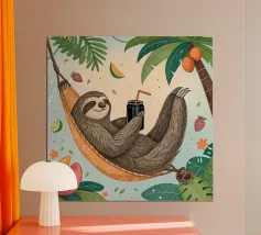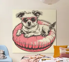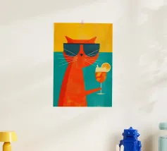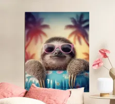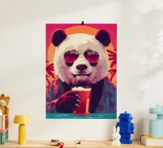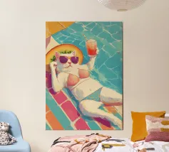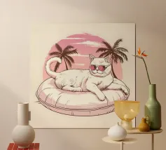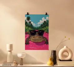 Eine skurrile und lebendige Illustration eines Eisbären, der sein bestes Leben lebt - mit Sonnenbrille, Cocktail in der Pfote und schwimmend in einem Kinderbecken mit einem Mini-Wasserfall. Vor einem tropischen, pinkfarbenen Hintergrund bringt dieses Kunstwerk einen Hauch von Humor und gute Laune in jeden Raum. Perfekt für Liebhaber von schrulliger Kunst, Retro-Ästhetik und entspanntem Lebensgefühl. Ob für Ihr Wohnzimmer, Ihr Büro oder Ihr Sommerhaus - dieses Kunstwerk garantiert ein Lächeln.