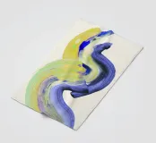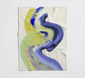 Aquarellähnliche Farbspritzer spritzen auf ein starres Raster. Die beiden Schichten überlagern sich, ohne sich zu vermischen, und schaffen so einen visuellen Dialog zwischen organischer Spontaneität und strengem Rahmen. Ein himmlisches und zugleich architektonisches Bild.