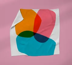 Leuchtende Farben in fließender Bewegung: Dieses moderne Kunstposter zeigt verschlungene, bandartige Formen in Pink, Orange, Gelb und Blau. Die geschwungene Komposition erzeugt eine dynamische Balance und visuelle Tiefe durch überlagernde Transparenzen. Perfekt für kreative Räume, moderne Interiors und farbenfreudige Wände mit Designfokus.