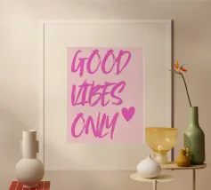 Rosafarbene Pastellwellen mit dem Text: Go with the flow. Unter anderem mit KI erstellt (Canva).