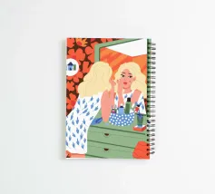 This artwork shows a person with blonde hair looking into a vanity mirror. The background is filled with floral wallpaper, and the vanity table is adorned with various items, creating a nostalgic and intimate scene.