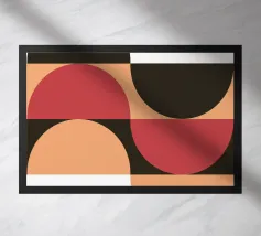 Tauchen Sie mit diesem lebhaften abstrakten Kunstdruck in die fesselnde und strukturierte Welt des Bauhauses ein. Das Design zeigt eine komplexe und doch harmonische Komposition ineinandergreifender geometrischer Formen - Kreise, Viertelkreise und Quadrate - in einer dynamischen Farbpalette aus lebhaftem Türkis, sanftem Lavendel und tiefem Pflaumenrot. Dieses Stück verkörpert perfekt den innovativen Geist und die funktionale Schönheit, die für die Bauhaus-Bewegung von zentraler Bedeutung waren, und schafft ein visuell anregendes Muster, das sowohl modern als auch zeitlos ist. Mit einer beeindruckenden Auflösung von 7000x5000 Pixeln und einer Auflösung von 300 dpi garantiert dieses hochwertige Digitalkunstwerk, dass jedes einzelne Element des Bildes perfekt zur Geltung kommt.