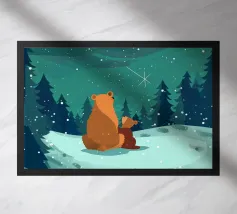 A playful illustration of two bears blowing bubbles in space that adds fun and wonder to any decor or clothing. Perfect for dreamers of all ages.
