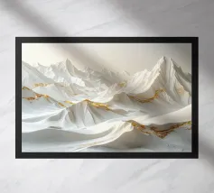 Gebogene schwarze und weiße Wellen wellen sich über die Leinwand und bilden eine abstrakte Landschaft. Die fließenden Übergänge schaffen ein Gefühl von Rhythmus und Tiefe und laden zu Kontemplation und Kreativität ein.
