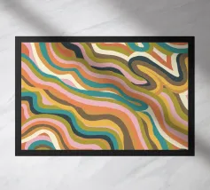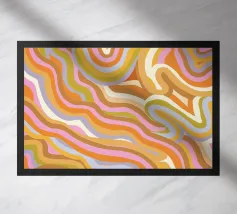 Ein fröhliches und ausdrucksstarkes abstraktes Wellenmuster mit fließenden, gewellten Linien in einer vom Retro-Regenbogen inspirierten Farbpalette - von sanftem Orange und warmem Pink bis hin zu kräftigem Türkis, Aqua, Gelb und Rot - alles sanft überlagert auf einem warmen elfenbeinfarbenen Hintergrund. Dieses minimalistische, aber wirkungsvolle Design zelebriert die Schönheit der Unterschiede und die Harmonie, die in der Vielfalt liegt. Ein auffallendes und erhebendes Stück, das Stolz, Gleichheit und Selbstdarstellung ehrt - perfekt für Wandkunst, Wohndekoration und alltägliche Accessoires, die Individualität und einen farbenfrohen Rhythmus fördern.