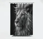 Dieses eindrucksvolle Schwarz-Weiß-Porträt eines majestätischen Löwen zeigt die beeindruckende Mähne und die kraftvolle Schnautze in detailreicher Nahaufnahme. Die minimalistische Komposition und die feine Fellstruktur unterstreichen die natürliche Schönheit und Stärke dieses wildlebenden Tieres.