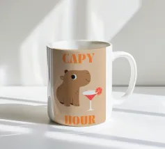Mit "Capy Hour" ist es immer Zeit für Entspannung! Dieser verspielte Aufdruck zeigt ein charmantes Wasserschwein, das sich in purer Glückseligkeit räkelt und uns daran erinnert, dass es keine bessere Zeit als jetzt gibt, um zu entspannen und das Leben zu genießen. Mit seiner freudigen Energie und entspannten Stimmung feiert dieses Motiv die glücklichste Stunde des Tages - wenn die Welt zur Ruhe kommt und man einfach "chillen" kann. Es passt perfekt in jeden Raum, der eine kleine Extraportion Spaß und Entspannung braucht, und erinnert daran, dass jede Stunde eine "Capy Hour" sein kann! Entspannen, auftanken und den Moment genießen mit Capy Hour! 🐾🍹