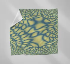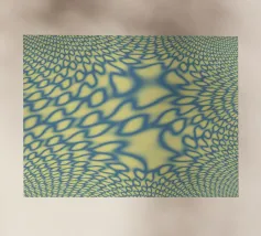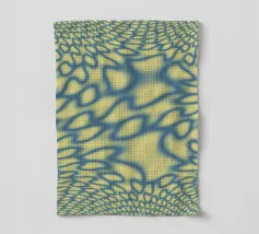 Das Bild zeigt dynamische Kreise und Fraktale als Muster in den Farben Blau und Weiß