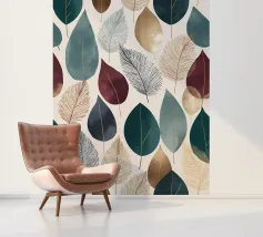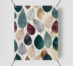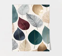 Dieses Kunstwerk zeigt ein wunderschönes Arrangement von Blättern in einer Vielzahl von Farben und Texturen. Die Blätter sind mit einem sanften Aquarelleffekt gemalt und die Details sind mit goldenen Akzenten verziert. Der Gesamteffekt ist beruhigend und heiter und erinnert an die Schönheit des Herbstes.