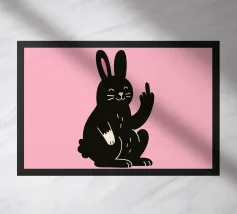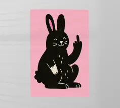 Dieses freche Poster mit einem niedlich illustrierten schwarzen Hasen auf knallpinkem Hintergrund bringt maximalen Kontrast zwischen Zuckeroptik und klarer Ansage. Der lächelnde Hase zeigt ganz nonchalant den Mittelfinger – ein augenzwinkerndes Statement für alle mit Humor, Haltung und einer Schwäche für ironische Tierkunst. Perfekt für Büro, WG oder kreative Räume.