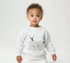 Unsere Baby Sweatshirts bestehen aus 85 % Bio-Baumwolle und 15 % recyceltem Polyester.