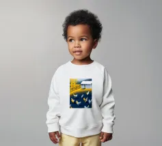 Unsere Baby Sweatshirts bestehen aus 85 % Bio-Baumwolle und 15 % recyceltem Polyester.