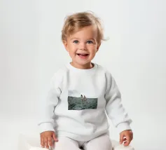 Unsere Baby Sweatshirts bestehen aus 85 % Bio-Baumwolle und 15 % recyceltem Polyester.