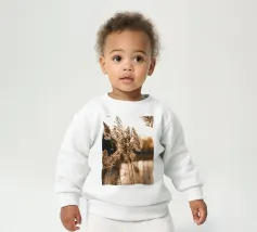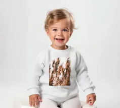 Unsere Baby Sweatshirts bestehen aus 85 % Bio-Baumwolle und 15 % recyceltem Polyester.