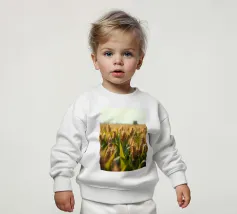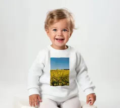 Unsere Baby Sweatshirts bestehen aus 85 % Bio-Baumwolle und 15 % recyceltem Polyester.