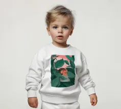 Unsere Baby Sweatshirts bestehen aus 85 % Bio-Baumwolle und 15 % recyceltem Polyester.