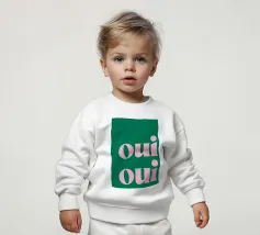 Unsere Baby Sweatshirts bestehen aus 85 % Bio-Baumwolle und 15 % recyceltem Polyester.