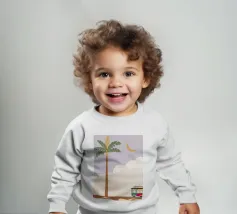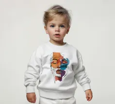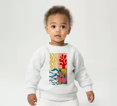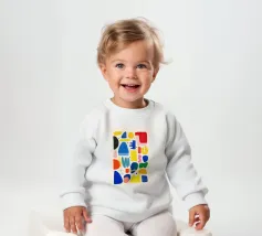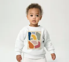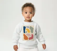Unsere Baby Sweatshirts bestehen aus 85 % Bio-Baumwolle und 15 % recyceltem Polyester.