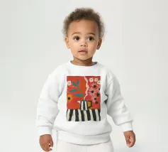 Unsere Baby Sweatshirts bestehen aus 85 % Bio-Baumwolle und 15 % recyceltem Polyester.