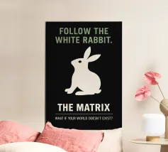 Die Matrix drucken, Alternative Film-Poster, Minimal Wall Art, schwarz & weiß, White Rabbit, Rabbit Hole, Matrix, Dystopie, Film-Fans Geschenk