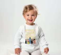 Unsere Baby Sweatshirts bestehen aus 85 % Bio-Baumwolle und 15 % recyceltem Polyester.