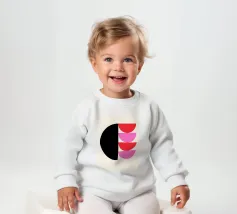 Unsere Baby Sweatshirts bestehen aus 85 % Bio-Baumwolle und 15 % recyceltem Polyester.