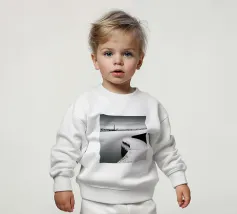 Unsere Baby Sweatshirts bestehen aus 85 % Bio-Baumwolle und 15 % recyceltem Polyester.