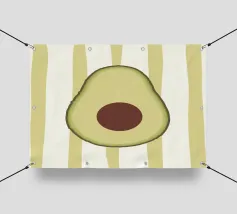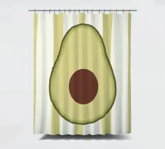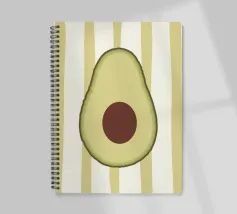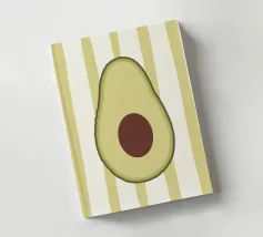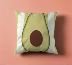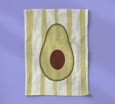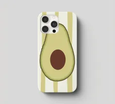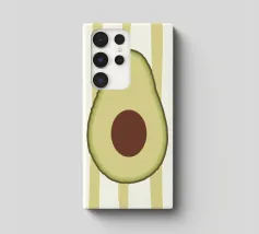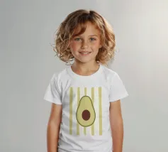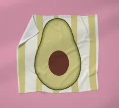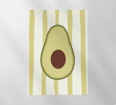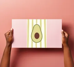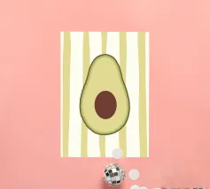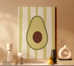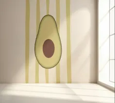 Eine süße und einfache Avocado Hälfte Illustration auf einem Pastell rosa Gitter Hintergrund. Perfekt für Kinderzimmer, Kinderzimmer oder verspielte Küchendekoration. Die sanften Farben und das freundliche Design machen es ideal, um einen fröhlichen und gemütlichen Raum zu schaffen.