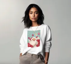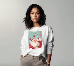 Charmante Illustration des Weihnachtsmanns in seinem traditionellen roten Anzug und seiner Mütze, umgeben von sanft fallenden Schneeflocken, die den festlichen Geist der Weihnachtszeit einfangen.