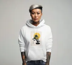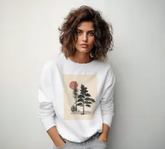 Illustration eines Bonsai-Baums mit einer gelben Sonne