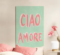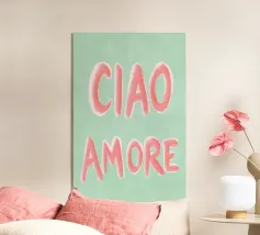 „Ciao Amore“ – eine liebevolle Botschaft in lebendigen Farben und fetter rosa Schrift bringt italienischen Charme in dein Zuhause. Diese Hellgrüne Acrylmalerei und das moderne Grafikdesign feiern die Liebe und sind perfekt für Valentinstag oder Muttertag. Ein fröhliches Sommer-Artprint, das Herz und Stil verbindet!