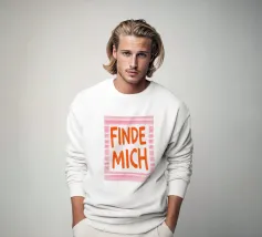 In leuchtenden Orange- und Lilatönen drückt dieser Artprint "Finde mich" in großen Buchstaben und Streifen die Sehnsucht nach Liebe und Selbstfindung aus. Die romantische Typografie umrahmt die Suche nach einem Partner und das gemeinsame Zusammensein. Ideal für den Sommer, fängt das Design spielerisch die Essenz von Beziehungen ein.