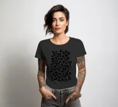 Stilvolles einfarbiges schwarzes Leopardenmuster mit schwarzen und dunkelgrauen Leopardenflecken auf einem anthrazitfarbenen Hintergrund.