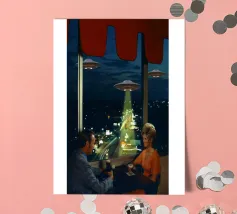 Aliens sind hier und nehmen alle eure Katzen mit! Surreale Retro-Science-Fiction-Collage von MsGonzalez
