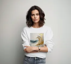 Diese zarte Blüte entfaltet sich wie ein leiser Moment voller Anmut. Die sanften, geschwungenen Formen wirken beinahe schwerelos, als würde die Blume im Stillen schweben. Ihr edles Weiß, kombiniert mit warmen goldenen Akzenten, strahlt eine ruhige Eleganz aus, die sofort berührt. Der strukturierte Hintergrund setzt feine Kontraste und lässt das florale Motiv wie ein kostbares Kunstobjekt hervortreten. Jede Linie wirkt harmonisch, jeder Schwung erzählt von Ruhe, Klarheit und einem Hauch von Luxus. Dieses Design bringt eine sanfte, zeitlose Schönheit in den Raum