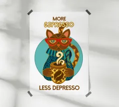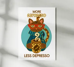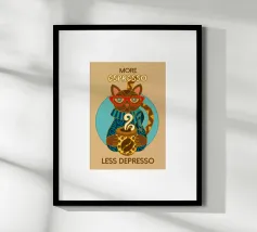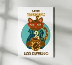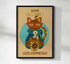Verleihen Sie Ihrem Raum einen Hauch von koffeinhaltigem Charme mit diesem eleganten Poster mit Espresso-Illustration! Dieses moderne Design ist perfekt für Kaffeeliebhaber und Minimalisten und fängt die Essenz eines kräftigen Espressos auf stilvolle, künstlerische Weise ein. Es eignet sich hervorragend für Küchen, Cafés oder Büros und bringt eine warme und einladende Atmosphäre in jeden Raum.