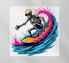 Stürze dich in die Brandung mit diesem fantastischen Skelett-Reiter! Dieses Design zeigt ein cooles Skelett, das mit Stil durch eine bunte Welle reitet. Es ist eine perfekte Mischung aus Strandkultur und einem Hauch von Makabrem. Hol dir dieses tolle Design für dein nächstes Strandabenteuer (oder einfach nur, um cool auszusehen).