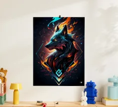 Schwarze Panthersilhouette, umgeben von orangen und roten Blumen. Warme Palette, markantes Blumenmuster; ideal für gewagte Kreationen, grafische Textilien und Accessoires.