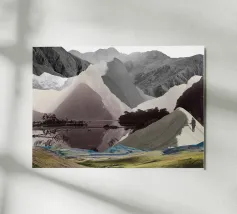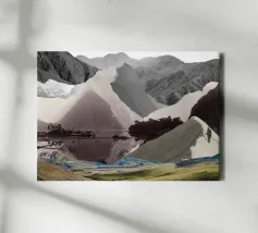 Diese Press Play-Collage fügt das Fernweh von vier Fotografen zu einem unmöglichen Horizont zusammen - ein Traumland, das es nie gab und das sich dennoch wie ein Déjà-vu anfühlt. Eine gemeinsame Erinnerung an Erde, Zeit und Ehrfurcht, die in einem einzigen, geheimnisvollen Panorama vereint sind. Der ikonische Mitre Peak am Milford Sound (Gebrüder Burton, 1880) geht über in Frank Arnold Coxheads Glasplatten-Panorama, führt vorbei an Harry Moults kargem isländischen Hochland und endet an Leslie Adkins Ruapehu-Hängen aus den 1920er Jahren.