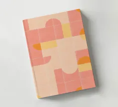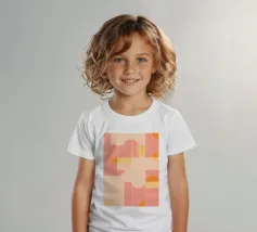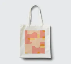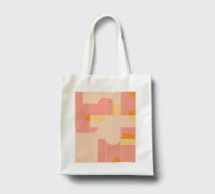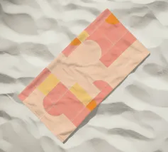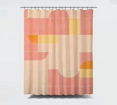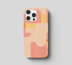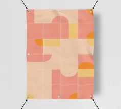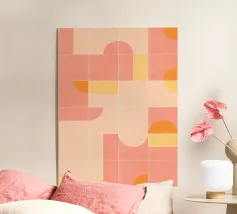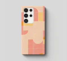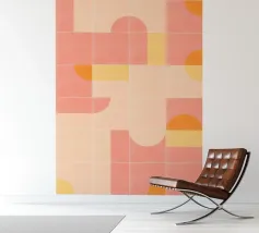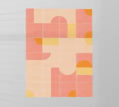 Modernes Muster aus der Mitte des Jahrhunderts, inspiriert von Fliesenböden und Wandbildern aus der Mitte des Jahrhunderts. Schlanke Linien, einfache Formen, laute Textur und eine lebendige Korallenpalette.