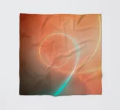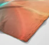Wirbelnde Kurven in weichen Farbverläufen von Orange und Petrol schaffen ein abstraktes Design. Dieser Hintergrund hat einen beruhigenden Spiraleffekt, bei dem die Farben nahtlos ineinander übergehen.
